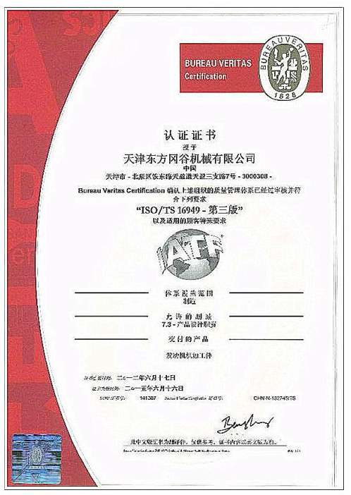 • TS16949質(zhì)量體系證書(shū)